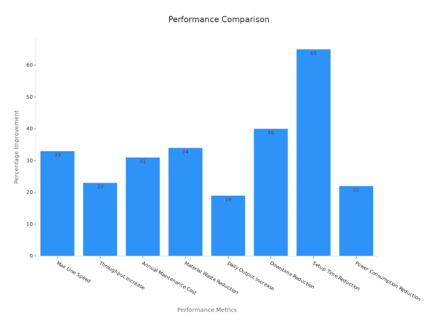 A good double side polishing machine in stainless steel coil processing can make your line 33% faster and cut downtime by 40%. You also spend less on fixing the machine and waste less material, saving 34%. The chart below shows how better machines improve important results: